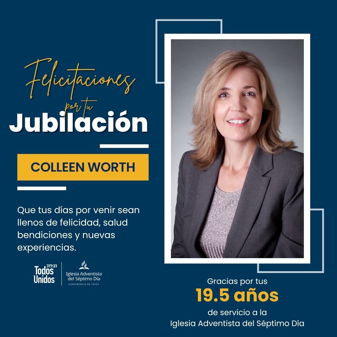 Colleen Worth se unió a la Conferencia de Texas en septiembre de 2003, inicialmente trabajando como asistente de maestros y posteriormente, en 2011, pasó a desempeñarse como secretaria de oficina en la escuela primaria Adventista de Keene, en Keene, Texas. Se incorporó al departamento de Recursos Humanos (RRHH) de la Conferencia de Texas en febrero de 2018 como asistente administrativa y fue ascendida a Generalista de RRHH en enero de 2022. Otros de sus servicios han consistido en trabajar para el Colegio de la Unión del Pacífico en Angwin, California. Después de casi 20 años de servicio a la Iglesia Adventista del Séptimo Día, Worth se jubilará el 31 de enero de 2026.